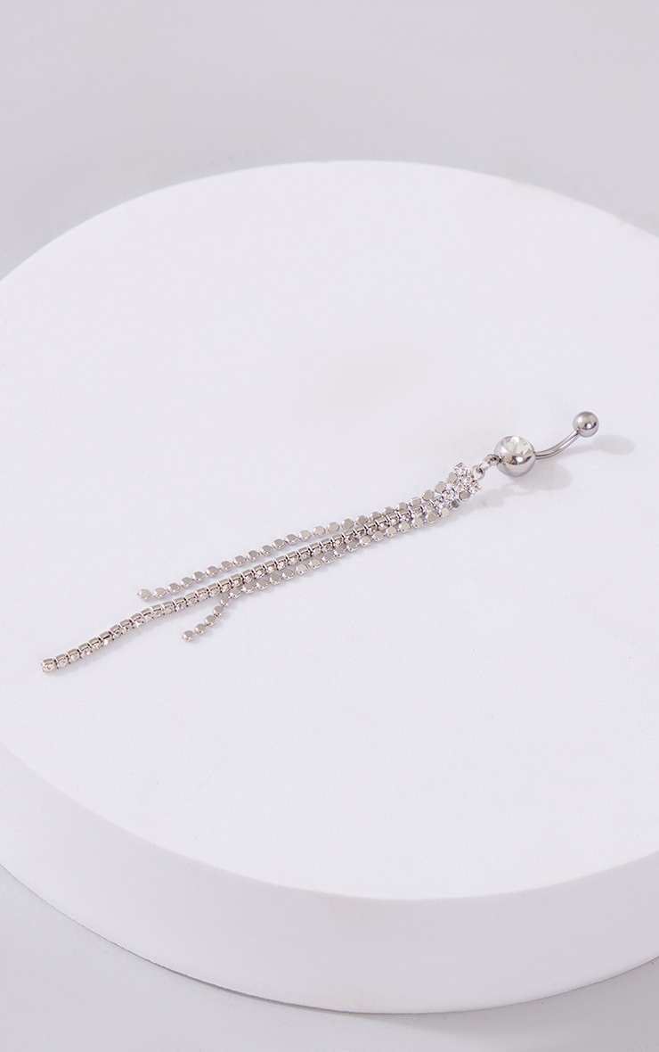 Silver Diamante Tassel Belly Bar Prettylittlething